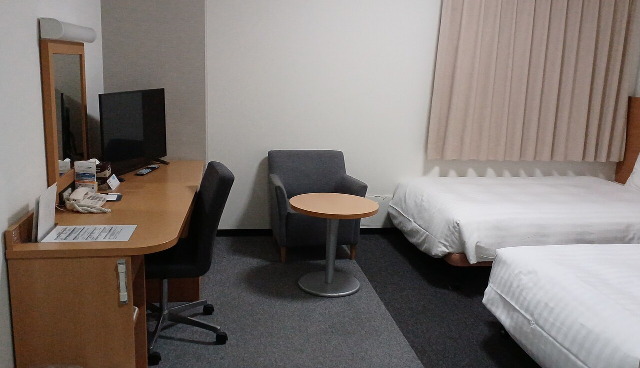 1泊利用。仙台駅の東口(S-PAL)から徒歩7分程度。フロンとは2階。エレベーター2基。チェックイン、チェックアウトはフロントに3台並んでる機械にて。ツインの部屋は広いが浴槽は狭め。ハンドソープとボディソープは同じもの。朝食のメニュー数がもう少しあるとよかった。目の前にミニストップあり。