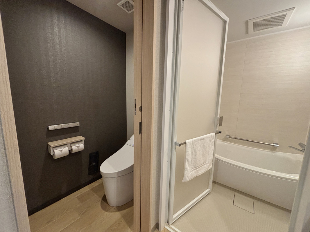 バスルームはバスとトイレがセパレートになっていて、アメニティはミキモト。