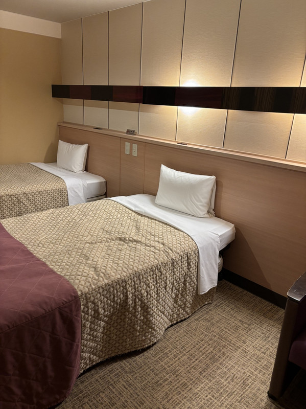 建物が古く、今まで泊まったホテルの中でダントツ1位で天井が低かったです。また室内に1段の段差があるので、ベビーカーがある方は避けた方が良いでしょう。公式ホームページでは大浴場が使えないと書いてありましたが、工事の関係で今日は使えるということで使わせていただくことができました。岡崎神社が隣にあるので朝お参りしてから大学に行くことができたのはよかったです。