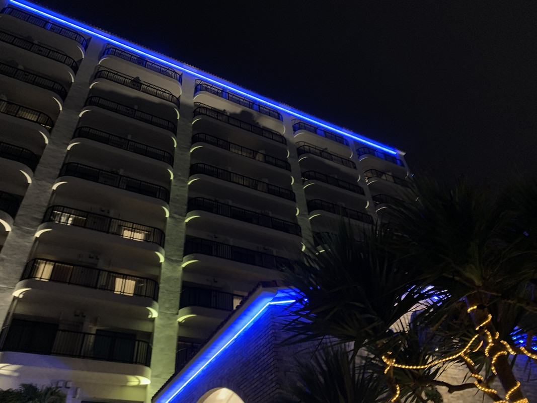 那覇空港そば、市内にある海目の前に建っているホテルです。海側はもちろん美しいビーチと海が見えますが、市内側の部屋はゴルフ場ビューになっています。当然、海側の部屋の方が宿泊料が高いですが、泊まるなら海側がおススメです。部屋は綺麗に保たれており、周りも静かでのんびり過ごせました。