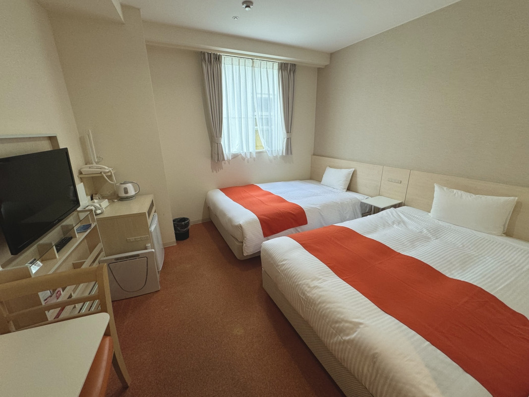 部屋はシンプルで所々古さを感じる所はありますが、寝泊りする分には問題ないと思います。ベットの枕元近くにコンセントがあるのも地味に嬉しい所。