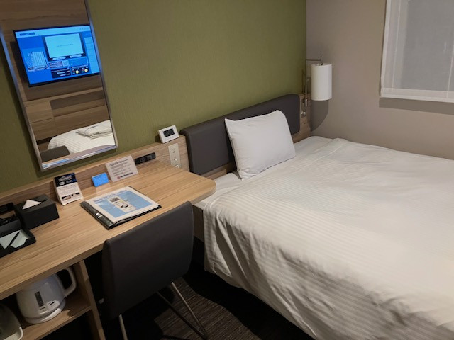 部屋は普通のビジネスホテルだと思いましたが、机が広く仕事が捗って良かった。1 / 3