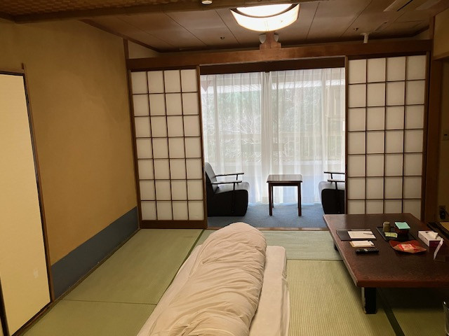 伊東園ホテルグループのホテルです。湯河原駅からホテルの送迎バスに乗って行きました。10分もかからずに到着しました。バブル期に建てたホテルという感じで古さを感じましたが、温泉大浴場と朝と夜のバイキングが2食ついてそこそこの価格だったので満足でした。部屋は2間もあり、一人には広過ぎました。コスパの良いホテルだと感じました。