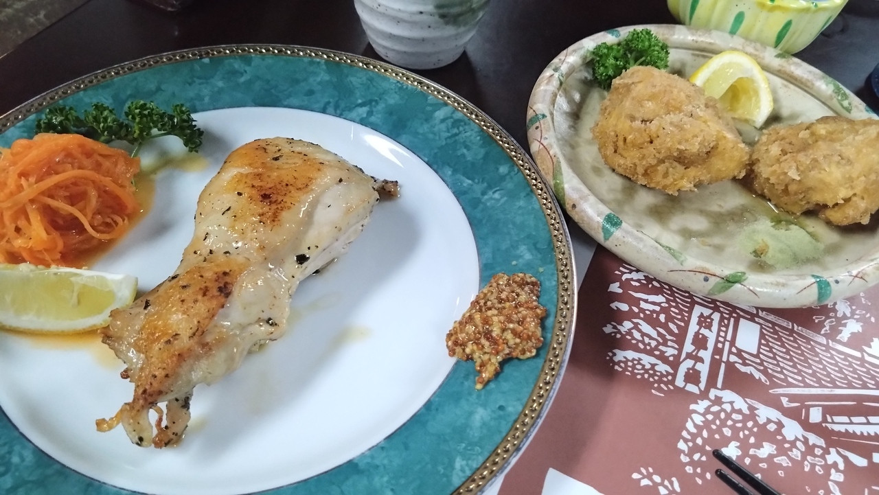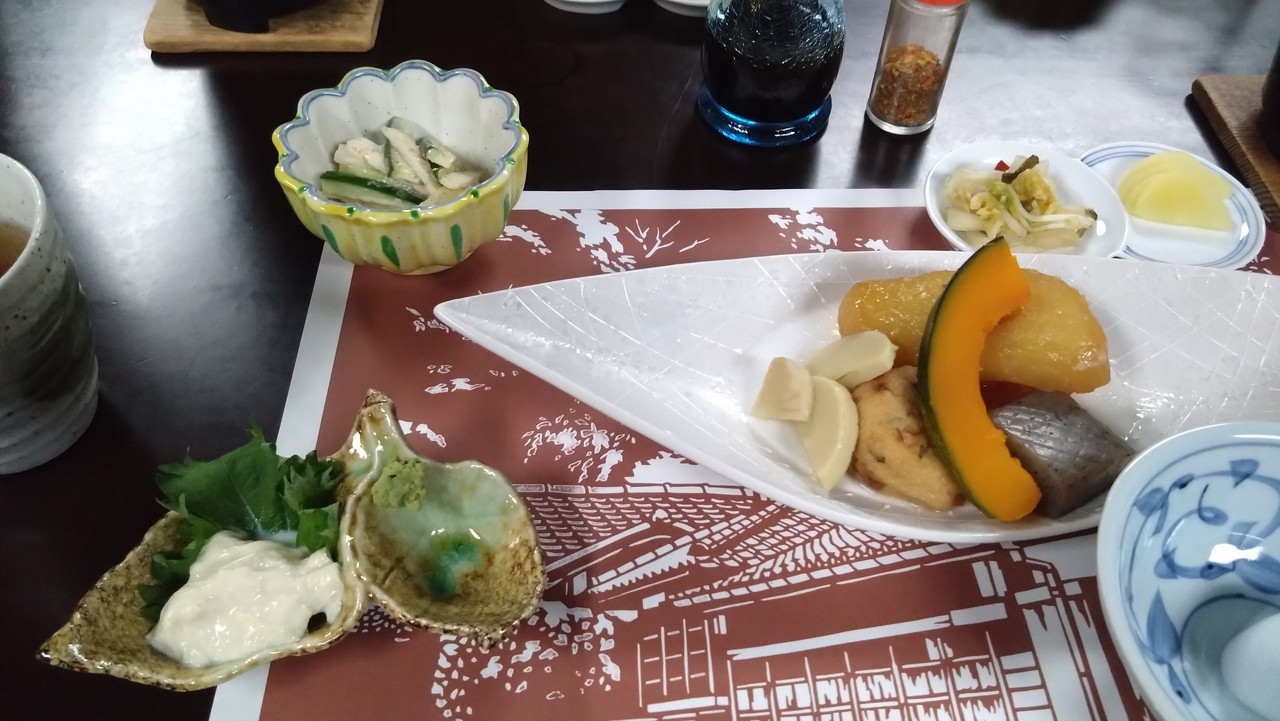 浴室は3つあり、空いていてば貸し切りで入れるスタイルです。客室数も多くないのでそれ程混まないです。食事は田舎料理的でどれも美味しく最後に出たうどんも良かったです。1 / 4