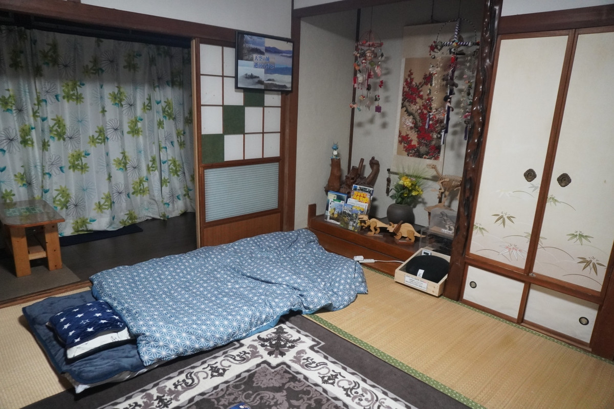 Lounge たきは、頼めば福井駅に迎えもあるようでしたが、まあまあ歩ける範囲。歩いて訪ねました。ゲストハウスなんだと思いましたが、こちらは相部屋にはしない主義だそうで、一階の日本間で落ち着いて泊まらせてもらいました。小さな食堂部分や風呂も共用で、ちょっと粗末なのは否めませんが、ご主人の対応が暖かくて、それを差し引けばネットの評判がいいのは頷けます。安さもあって、全国を旅する変わった人が利用する宿のようで、リヤカーを引きながら旅をするおじいさんの話とか、ちょっとびっくりするような話も聞かせてもらいました。
