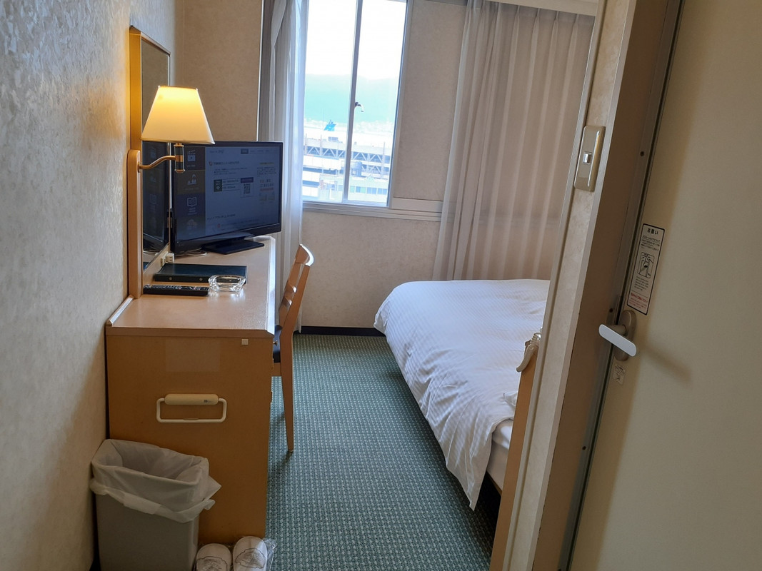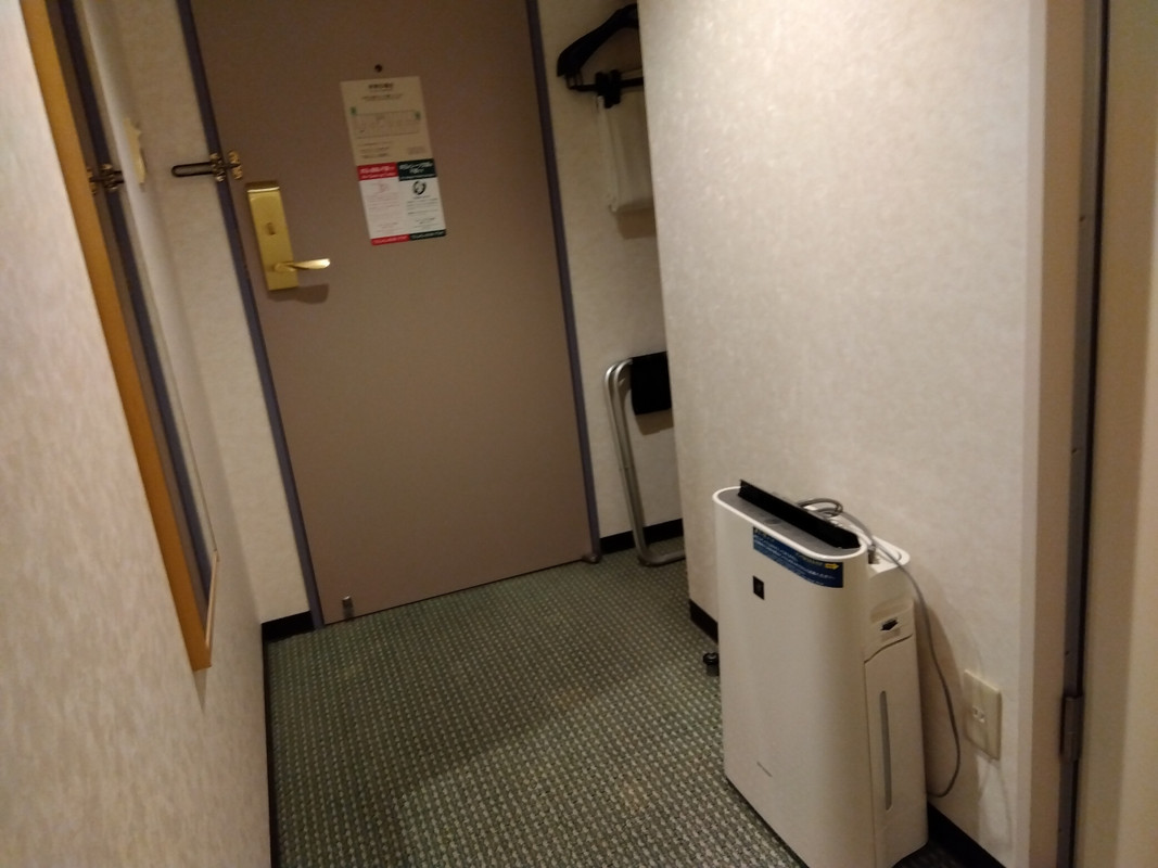 禁煙シングルが満室で喫煙シングルを利用。備え付けの消臭スプレーで臭い消し。