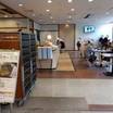 1階エリアは物が無い分広い。が座れる場所は壁沿いに1か所、5~6人ほど座れるスペースがあるだけ。ロビーが必ずしも寛げる空間になっているわけではないが、待つという場所でも無い無機質な感じ。