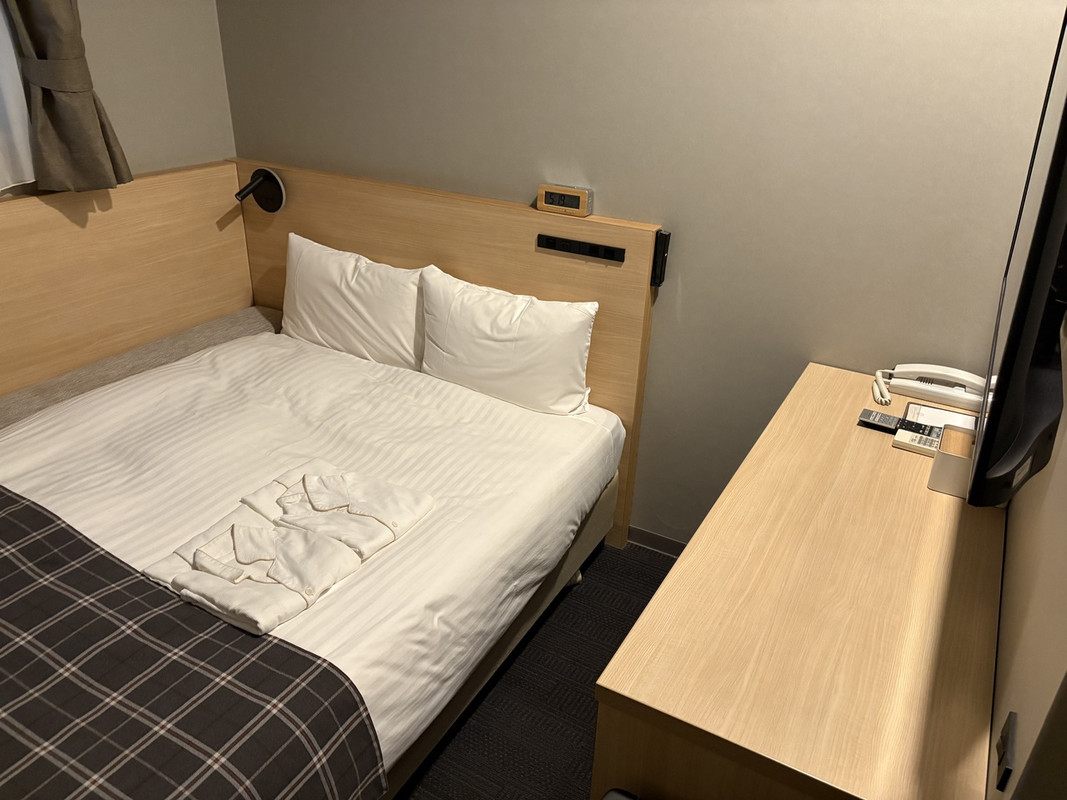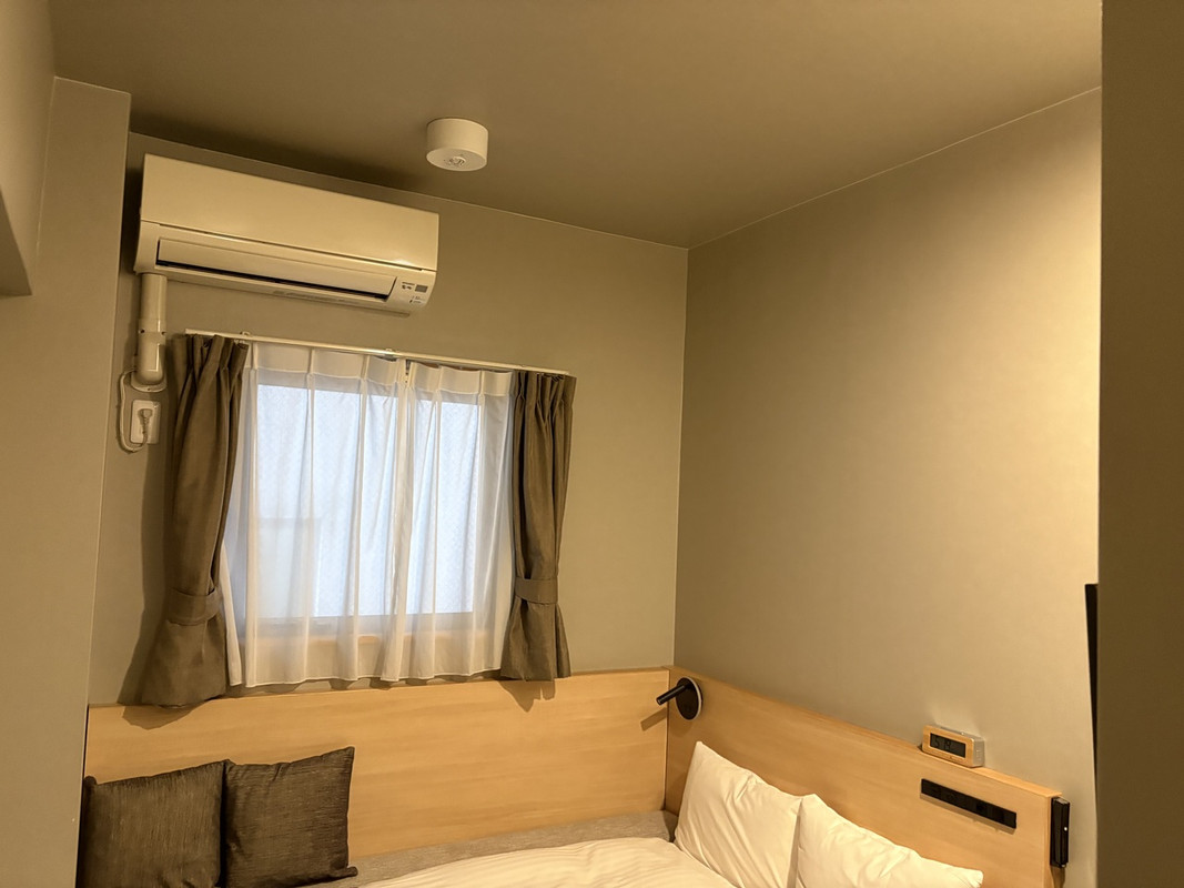 客室はビジネスホテルなのですがケトルがバルミューダだったり、ベットと壁の隙間がパットで埋められていたりして細かいところにこだわりを感じました。部屋は狭いですがベットで過ごすなら必要十分な位置にスイッチやリモコンがあり快適でした。ちゃんとバゲージラックもあり荷物の場所が自由に変えられるのもよかったです。