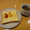 朝5-9時には食パンの提供あり。トースターも二台あるのでコーヒーなどど一緒に軽い朝食とすることが出来ました。1 / 2