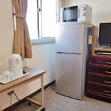 大きな家庭用冷蔵庫、電子レンジや整理タンス等があるので、長期滞在にはいいかと思います。1 / 2