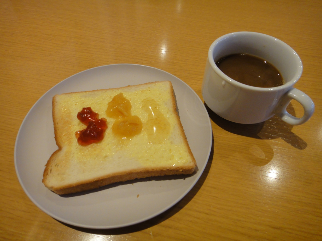 朝食はセルフで焼く食パンとコーヒーという、アメリカンな感じ?