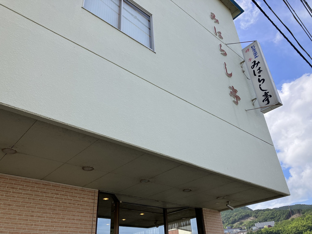 JR熊野市駅から歩いて5分ほどのところにあります。近くにはスーパーやコンビニもあって買い物には便利でした。建物はかなり年季が入っている感じでしたが、宿泊した10畳ほどの和室は綺麗に管理されていて、気持ちよく滞在できました。窓からは“みはらし亭”の名の通り、すぐそばを流れるきれいな川や遠くに山々を見渡せました。夕食はお刺身や揚げ物、酢の物などがあり、豪華なものではなかったが宿泊費から考えたら十分なもので美味しくいただくことが出来ました。二食付いて8000円ほどとお安いし、駅にも近いので近くに行くことがあったらまた利用したいと思いました。
