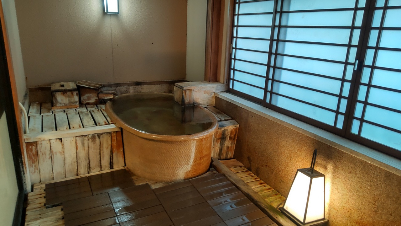 貸切風呂は今は利用してない部屋の外側に湯船を作った感じ。景色はないです。1 / 7