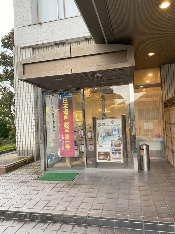三朝温泉街から遙か離れたところに立地している。このために温泉街へ行くためにはバスの利用が必要。せめて温泉街までの送迎があればいいのだが出来ないとのこと。ホテルの立地は部屋から川や山を望み静かな自然の中にある。温泉はラドンの含有量が世界でも有数の温泉であるとのこと。