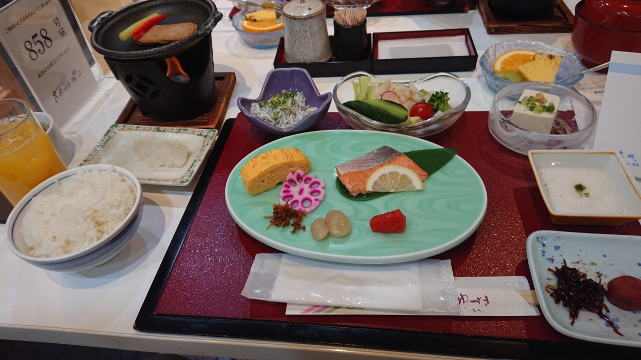 朝食、右は先付けの物、左はバイキングで。