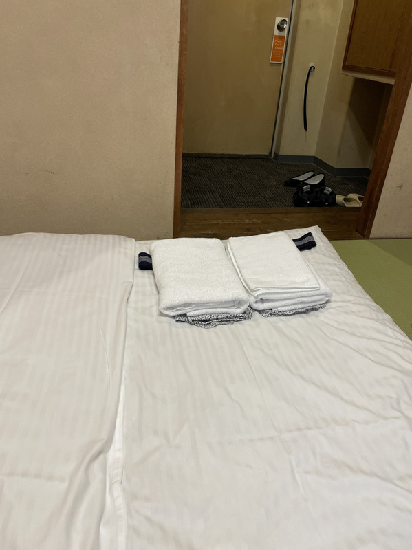 畳部屋で部屋は4畳ほどとかなる狭く布団が二つ敷いてありましたが狭すぎて重なっていました。一応部屋にはバストイレも小さな冷蔵庫もあるので寝るだけなら充分です。昭和感を味わいたい方には良いホテルだと思いました。1 / 1