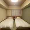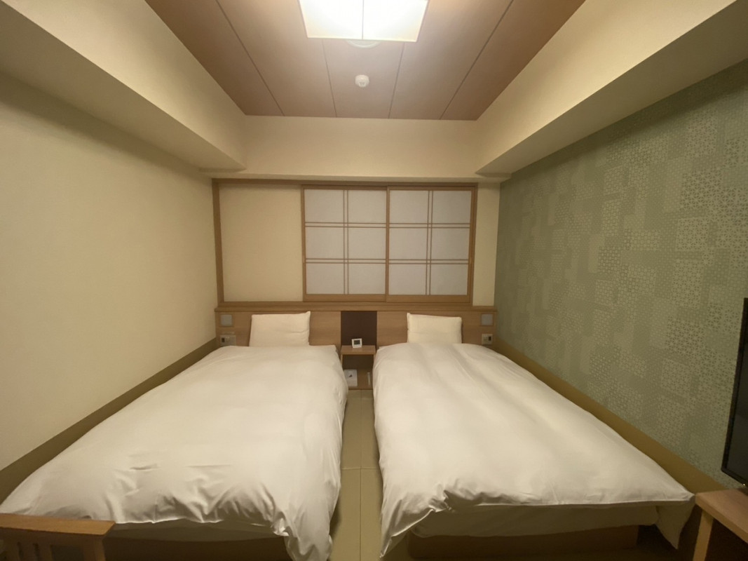 館内はすべて和で統一されていて、フロント横で靴を脱いで畳敷きの廊下を歩き、部屋は畳にベッドでした。