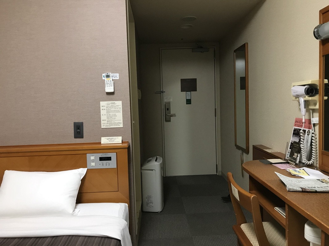 東口から徒歩6-7分の場所にあります。部屋の備品はやや古いですが、泊まるだけなら大きな問題はありません。寝間着も、作務衣タイプで、上下が別々のタイプ。大浴場があり、朝は5時からオープンしています。コロナ対策として、朝食は時間別に予約をすることになっていました。チェックインが遅かったこともあり、希望時間が満員だったため(朝の早い時間が先に埋まっていました)、外に食べに行きました。必ず食べたいという方は早めにチェックインをしてリクエストを出す方がよさそうです。スタッフの方は備品や手摺りなど、こまめにアルコール消毒をされていて、ありがたく感じました。