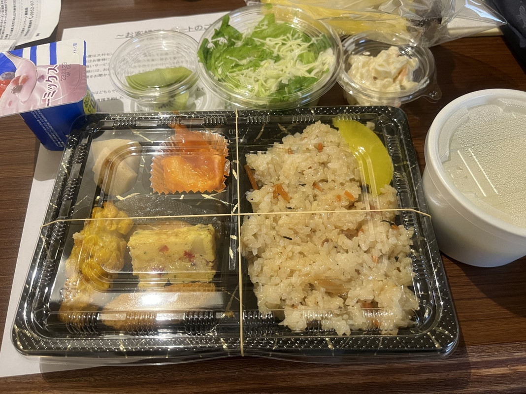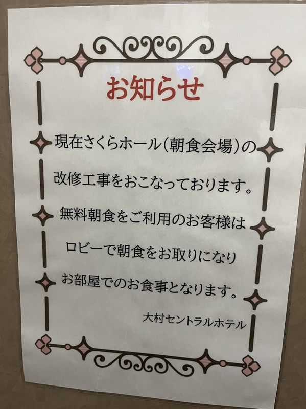6:45~開店で、会場が改装中でフロント前におお弁当や惣菜などがありました。部屋で食べましたが、美味しかったです