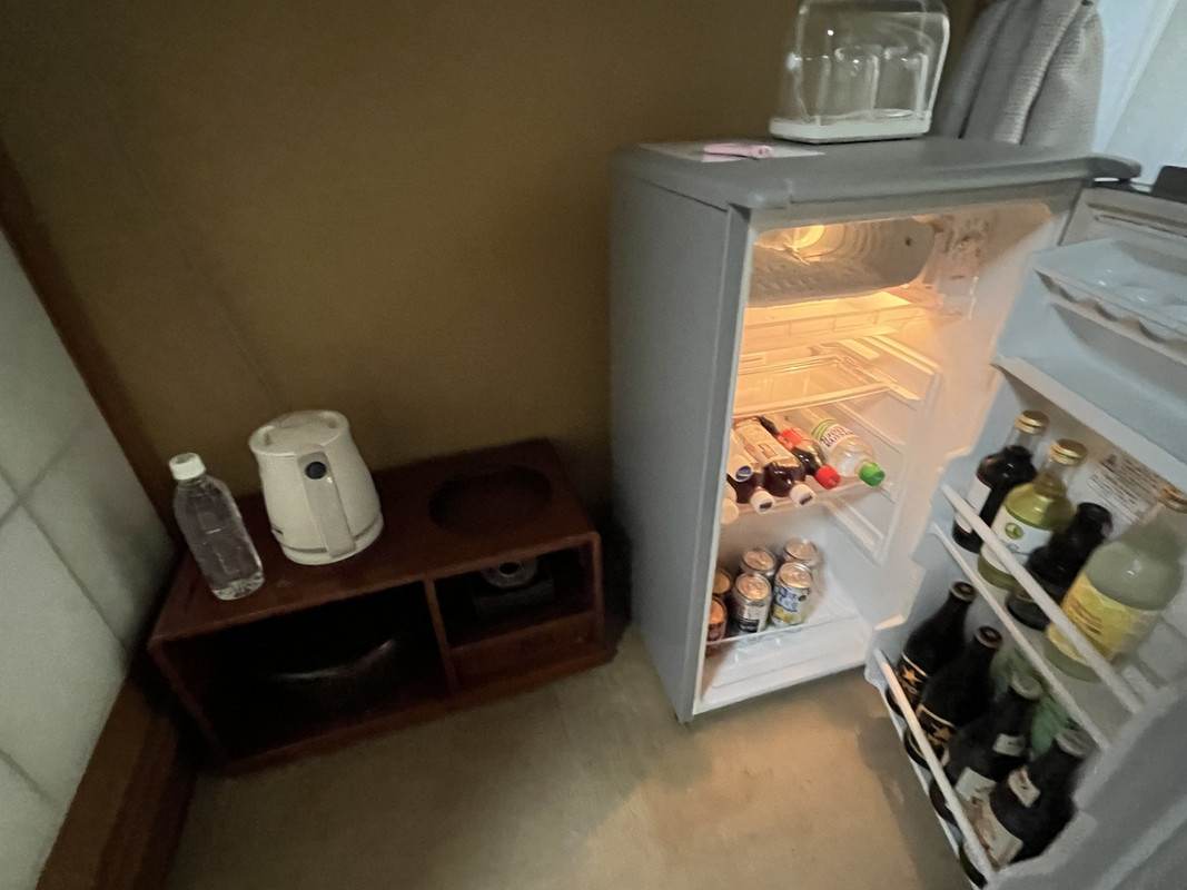冷蔵庫にはいろいろの有料飲料が用意されていて、朝食時に中居さんがチェックする昭和なシステム。