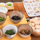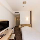 朝食はバイキング形式、おかずの種類は豊富です。大根おろし、ちりめんじゃこ、温泉卵、ユーグルト、納豆など一通りありました。ホテルの裏にはコンビニがあり、ペットボトルなど購入に便利です、部屋はビジネスホテルなので狭いですが、テレビはBSも映りました。