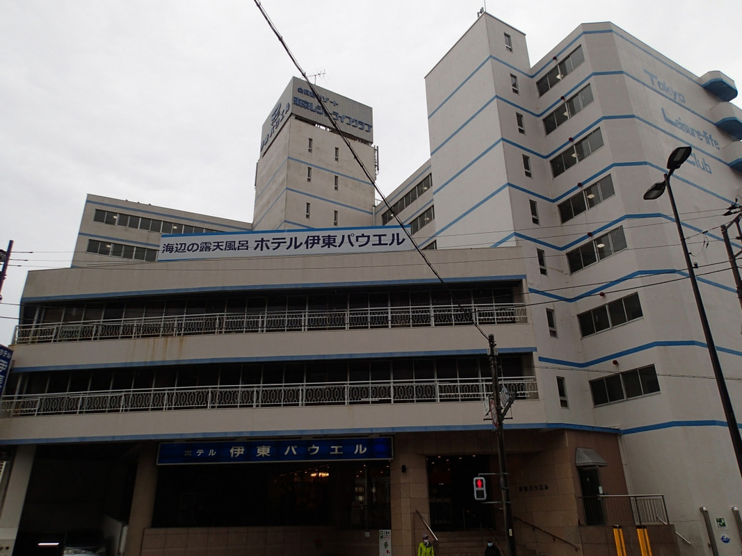 ホテルの無料駐車場付近から見る伊東パウエルホテル