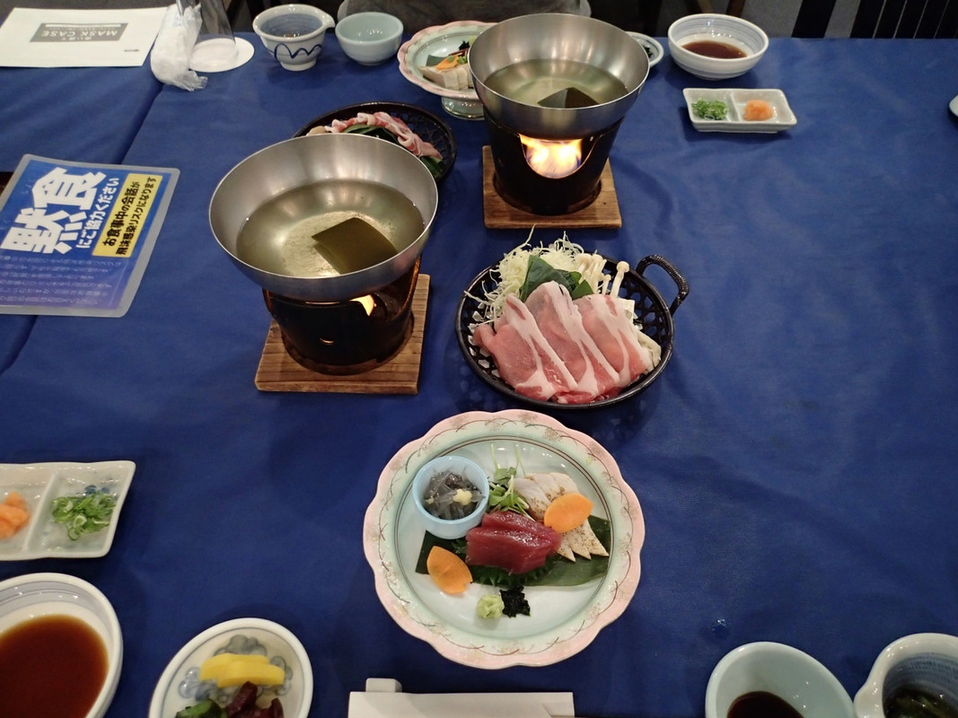夕食です。他に煮魚、野菜天ぷら、味噌汁などが来ました。