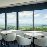 ラウンジの大きな窓を挟んで、大山の威風堂々とした山容がドーンと見えます。1 / 2