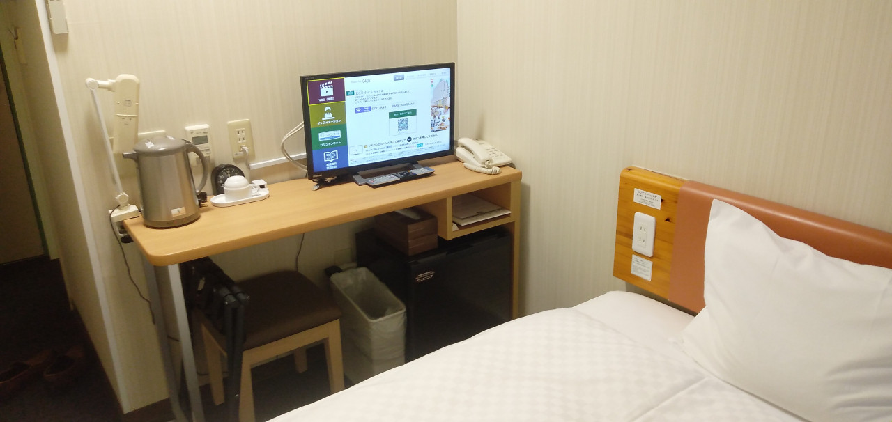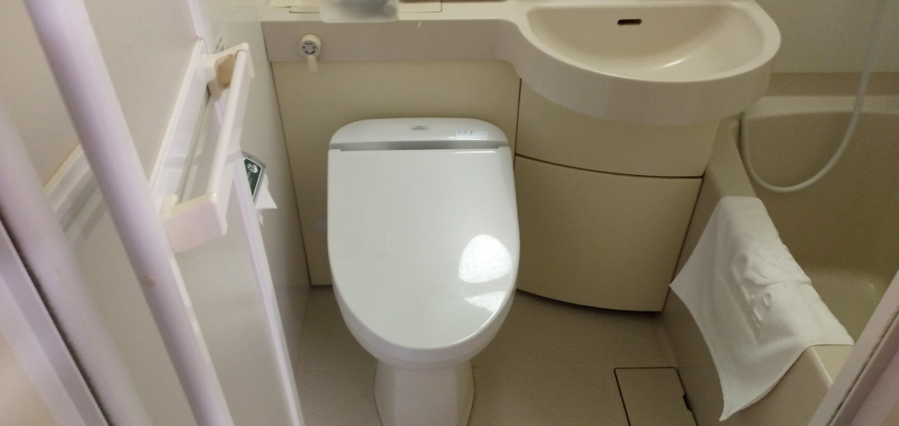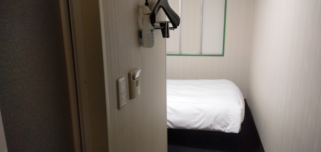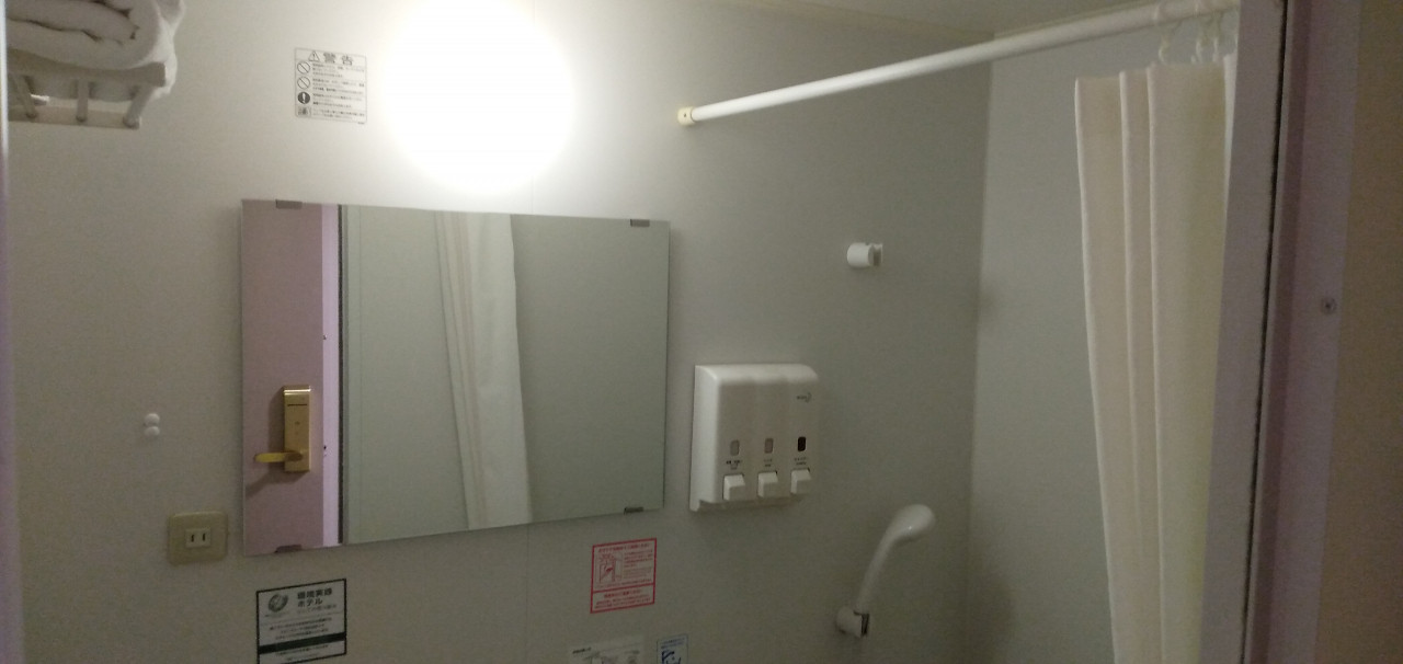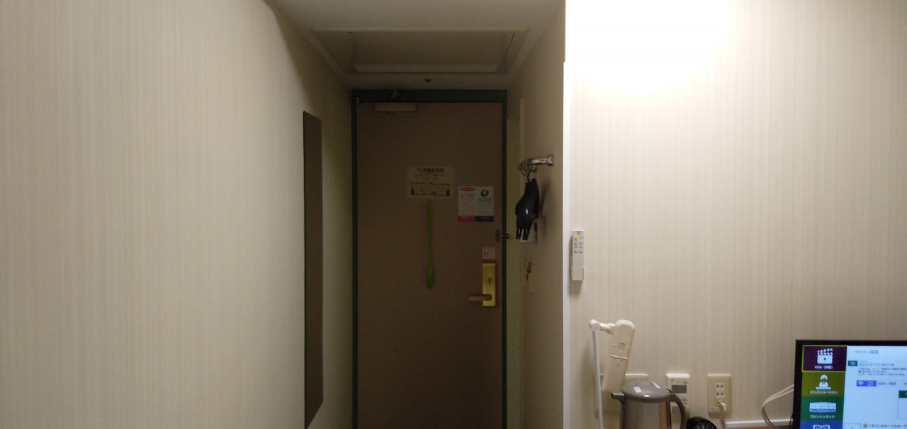 部屋に入るとすぐユニットバスでした。部屋が狭いとは言え、寝るだけ、繁華街から近い、他のホテルに比べると価格は安い、1階はファミマ、アーケードもマクドも徒歩2分、何の問題もないです。駐車場が無いので近隣の自走式立体駐車場で1,200円/一晩です。