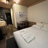 地下鉄の肥後橋駅より歩いて1分ほどのところにあり、周辺には飲食店やコンビニも多くありとても便利な立地です。小さなホテルですが、全体的におしゃれな感じで、綺麗に管理されていました。部屋は土足のまま中に入ってしまわないように、自宅の玄関のように靴を脱ぐ場所があったのが良かった。ツインの部屋にはベッドの他に、ベッドサイズの大きなソファーもあってゆっくり寛げました。お風呂は湯船なしのシャワーブースタイプでしたがとくに不便はなかったです。ただ、トイレとシャワーブースの堺(入口)が、透明のガラスだったのには、何故?と思いました。小さな冷蔵庫には、無料のペットボトルの水がありました。お茶のパックや電気ケトルは部屋に用意がありますが、フロント横にコーヒーや紅茶などの無料サービスがありました。フロントの応対も親切丁寧よかったです。