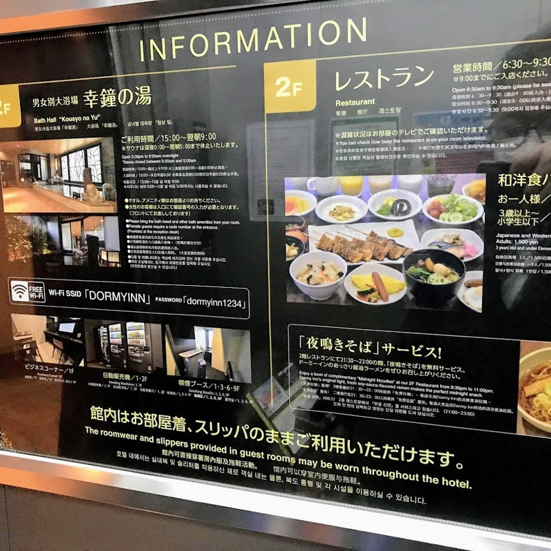 温泉の大浴場や夜泣きそばもあるドーミーインは、ビジネスホテルの中で上位にランクされると思います。
