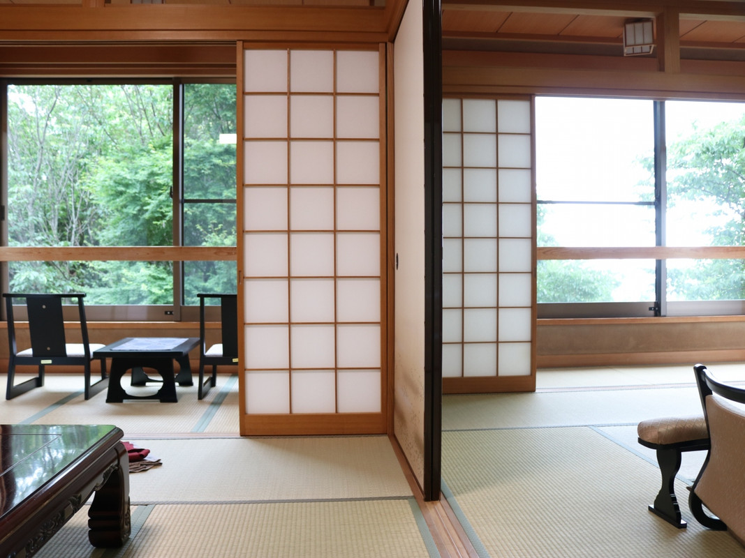 お部屋は広いです。2部屋あるのでお布団を敷いたまま朝食を隣の部屋でいただき