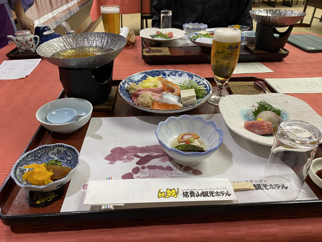 大きな大浴場と露天風呂があります。露天風呂には、たぬきの焼きものの一人用の冷泉もあり、ゆっくりできました。露天風呂に面して桜並木があり、残念ながら開花時期ではなかったてすが、その風景は想像できました。古風な館とエレベーター付きの6階建の館、向かいに新館がありました。階段しかない部屋もあり、足が悪いなら部屋の選択が必要です。