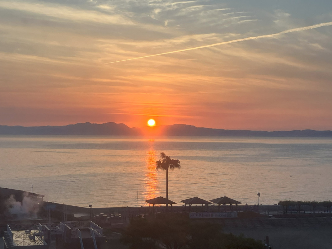 屋上の貸切風呂、また客室からも長崎半島に橘湾越しに沈む夕陽が感動的でした。夕食の海産物も新鮮で満足。館内は、和風モダンにリノベーションされ、清潔で、使い勝手も良かったです。ホテルの看板が小さく、見落としました。初めての方は、要注意です。長崎市方面からくると、信号「小浜マリンパーク」の手前です。1 / 5