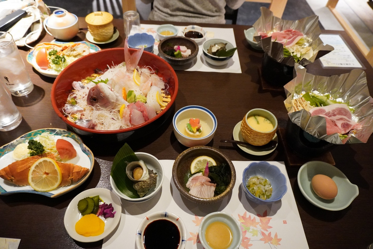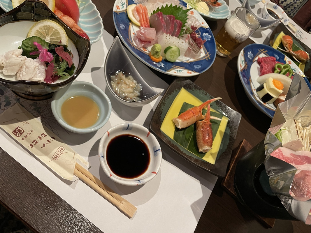 ボリューム満点でお刺身や小鍋などいろいろあり楽しめました。1 / 3