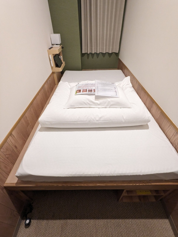 四条烏丸の大丸の近くにあり、立地は最高かと思う。個室形式なのでカプセルホテルよりプライバシーは確保できて快適かと思う。イメージとしては東京のドヤ街(山谷)の宿に近いかと思う。(こちらの方がずっときれいだが。)朝食はドトールのモーニングセットだった