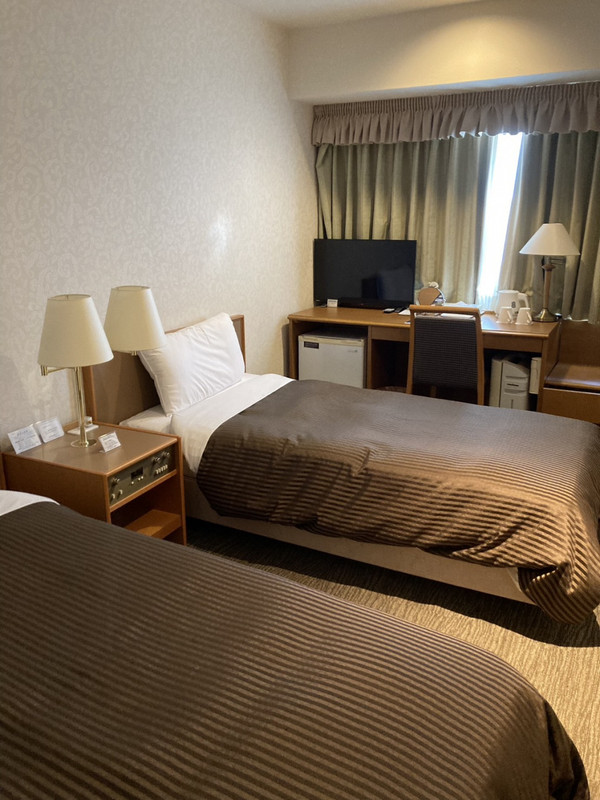浜松城に隣接しているホテルで、客室から天守閣を眺めることができ、夜はライトアップしているお城の眺望が抜群です。客室は広いのですが天井がやや低く、小綺麗にはされていますが、やや経年劣化を感じさせます。外国人の滞在も多い様で、大きなビジネスホテルという感覚でした。