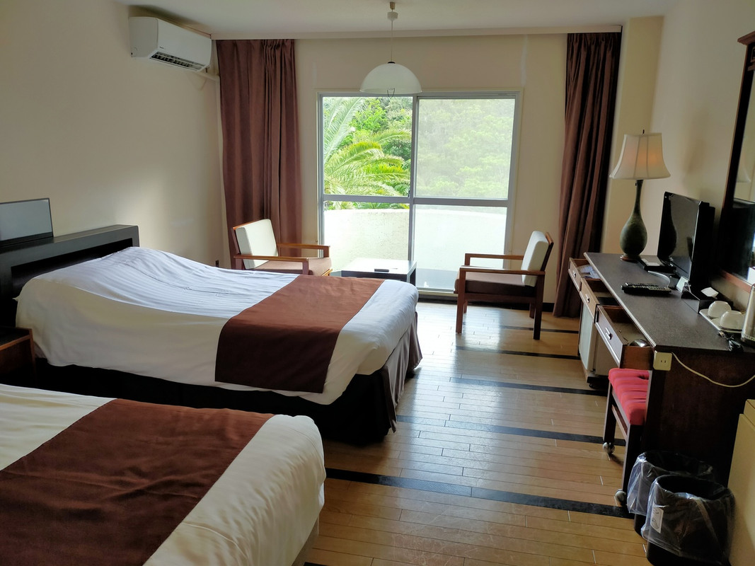 八丈島で一番大きなホテルです。部屋のドアが金属製で重いなど、建物に古さを感じましたが、綺麗に整備されて快適でした。二階へは階段のみです。他のホテルからは少し離れたところにあるので、空港からの送迎はあるものの、レンタカー利用が便利です。ジャ一ジ一牛乳やフレンチトーストなど、朝食が美味しかったです。