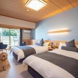 「海を望む ペットと泊まれる宿 Wan's Resort(ワンズリゾート)城ヶ崎海岸」は、相模湾を望む絶好のロケーションにあります。全28室が愛犬との宿泊に対応し、ドッグランダイレクトツインやドッグガーデンでのびのびと遊べる空間が魅力です。レストランでは伊豆の食材を活かした極みフレンチコースを堪能し、愛犬と共に特別なひとときを過ごせますよ。