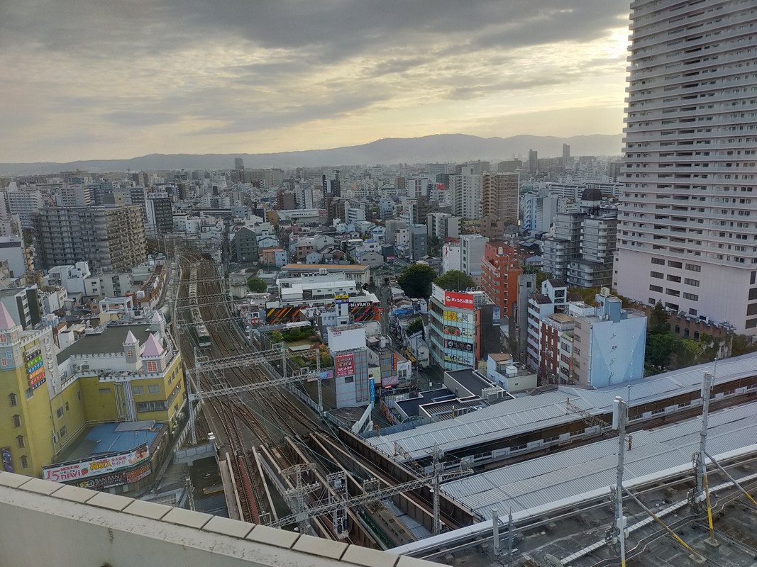 朝になれば行き交う京阪電車や環状線の電車を眼下に望むことができます。