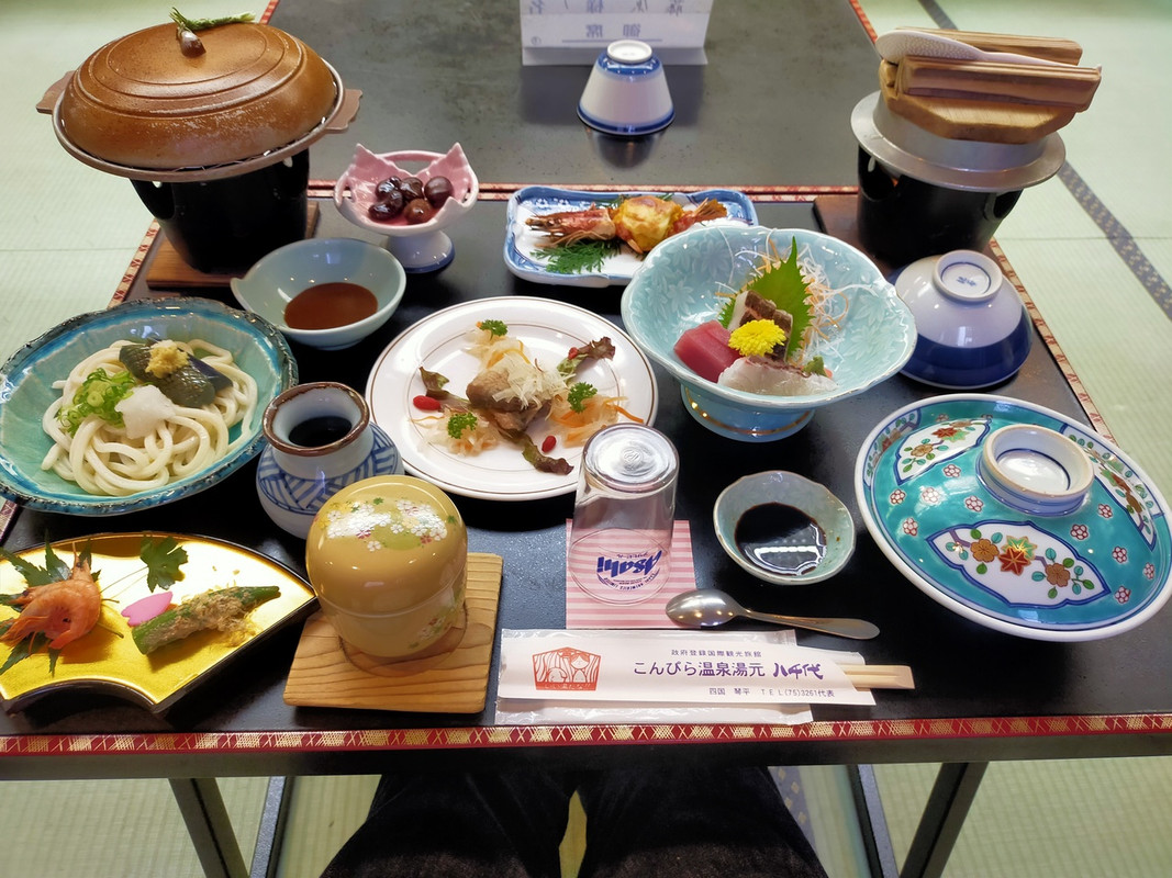 直前の平日プランで申し込みして泊まりました。1万2000円で1泊2食付きは安いと思います。料理に関してはボリュームもあり、お刺身、陶板焼きなと美味しく頂きました。でもお風呂か寂しい感じです。屋上に露天風呂はありますが、野ざらしなので日が暮れるまでは日差しがきついです。そして、日が暮れてからは女性専用となりますので、結局入らずじまい。内湯は10人入ればキチキチな浴槽が1つあるだけですので、入浴を楽しみたい人には不向きかと思います。金比羅山にも近く、コンビニも近いので便利は便利でした。朝に参拝して、温泉で汗を流すのもいいと思います。