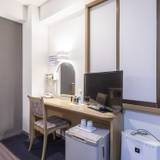 西条駅の目の前にあり、駐車場は向かいのローソンの裏手の砂利です。部屋は広くベッドはダブルかな。硬さも非常によかったです。フロント前のロビーには24時間のコーヒーやお茶のサービスがあります。朝食は5時30分からですが、その前には食べれます。ゴミロスのため一人袋入りパン2個で、持ち帰りもできるので便利です。