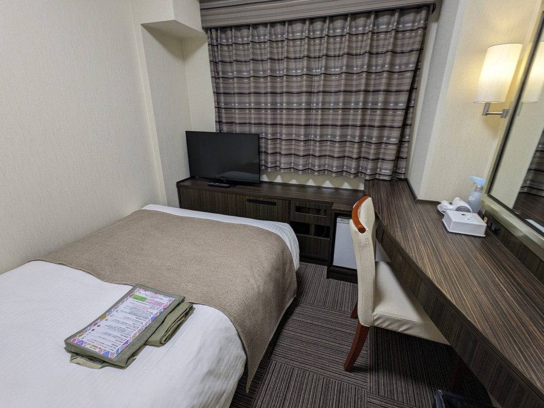 とにかく駅から近い!ということで選びました。残念ながら遅めのチェックインになってしまい、長岡を訪れるのが2回めであることも逆に災いして、駅からアオーレ長岡への直行通路を歩いてしまったことで遠回りしてしまいました。素直に外を歩いたほうが近いです。広めの部屋に変更してもらったので滞在は快適でした。バスルームも標準装備でストレスなく利用できました。これまで新潟県内を動くときは燕三条が多かったので、これなら長岡もありだと思いました。