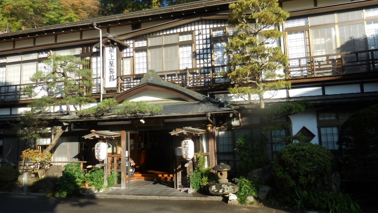 鎌崎温泉は600年前から「奥羽の薬湯」と言われた湯治場だったが今は4軒の旅館が残る静かな温泉街。最上屋旅館と合わせて長い歴史を持つのが向かいに建つ「湯主一条」。木造一部四階建ての旧本館は、登録有形文化財に指定されている。