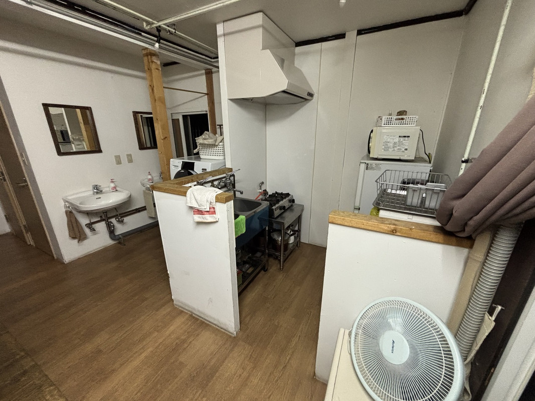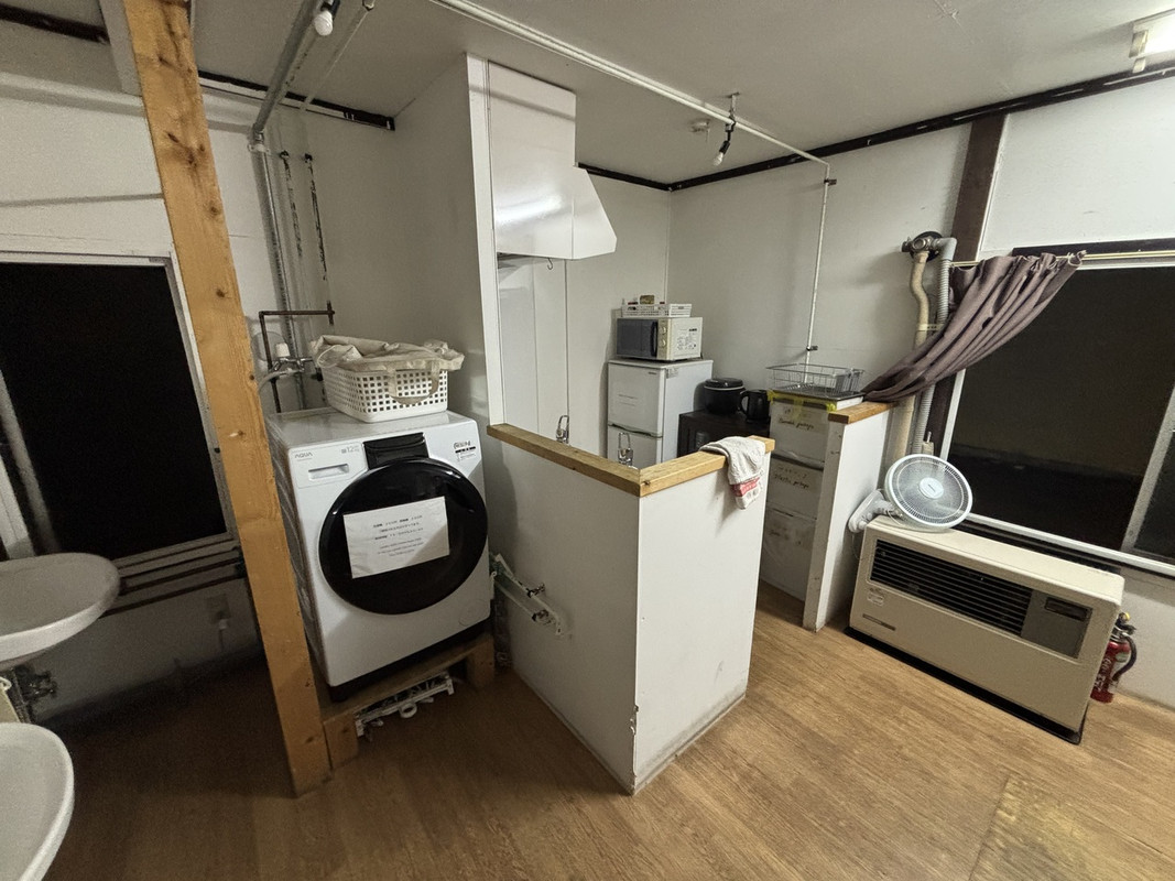 シャワールームは2箇所しかない。シャワールームの横に洗濯機があり、シャワールームの前は洗濯物干し場になっている。生乾き臭い。