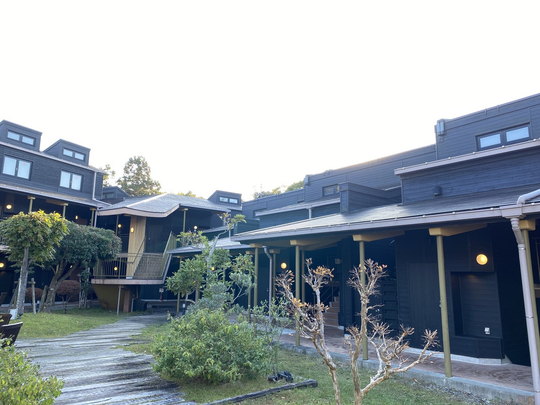 小高い丘の上にあり夜は明かりもなく、静かな場所です。ロフト付きと露天風呂付きの部屋があります。
