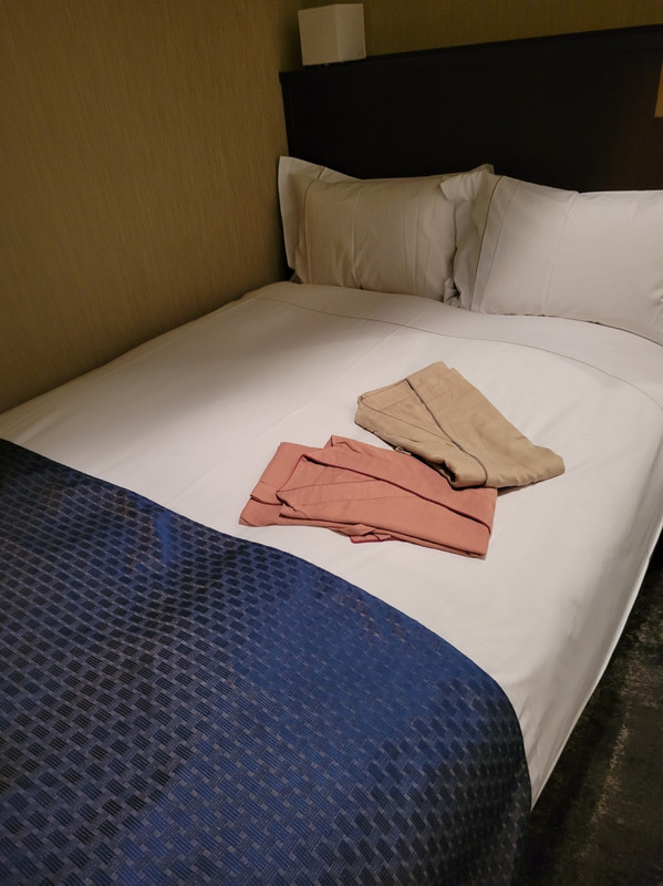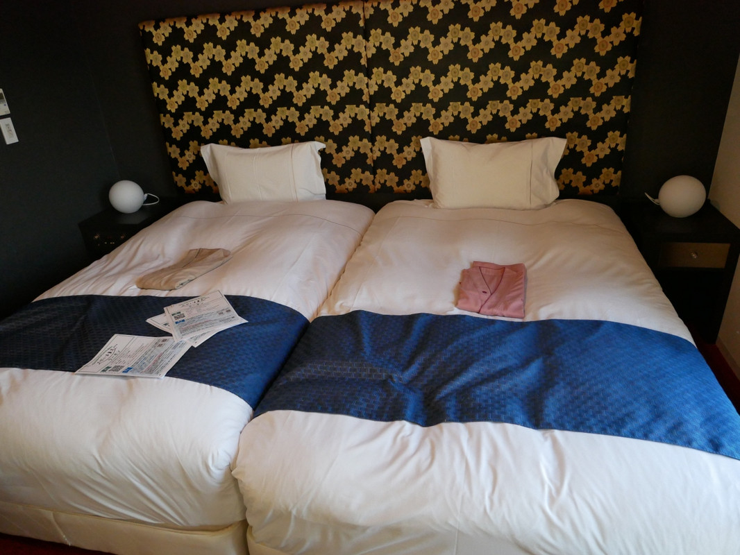 入口から和のテイストが強く、どんな部屋なのか少し心配になりましたが、室内は落ち着いたきれいな部屋でした。海外の旅行客から見た日本のイメージ、といった感じでしょうか。今回の客室は窓をあけても、目の前が壁でしたので天気も分からず寂しかったです。