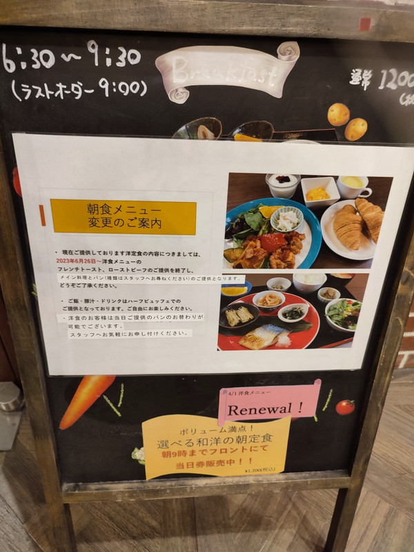 - 朝食 (セルフサービスの朝食) の料金 (概算) : 大人 1500 JPY、子供 1500 JPY