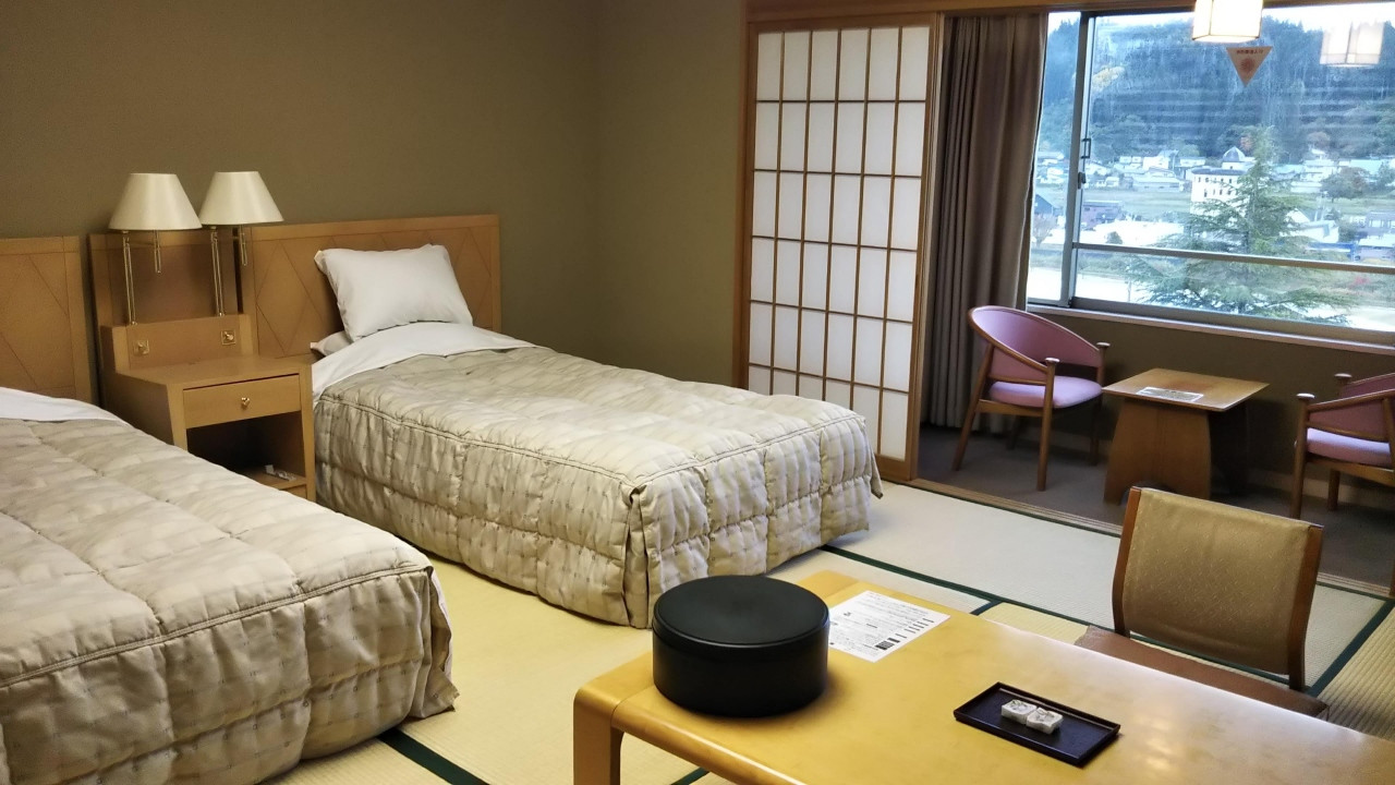旅行社の手配で宿泊。部屋も食事も風呂も「こんなものかな。」部屋の冷蔵庫は空。廊下に自販機はあるがアルコールは無し。