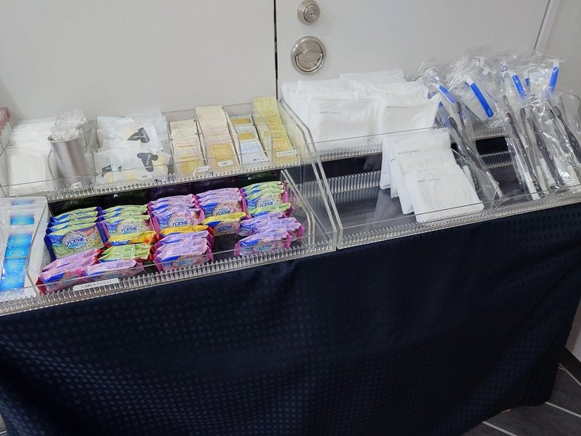 ロビー横にアメニティコーナーがあって、好きなものを取って行くスタイル。